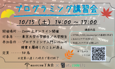 【丁友会 × ut.code();】プログラミング講習会のお知らせ